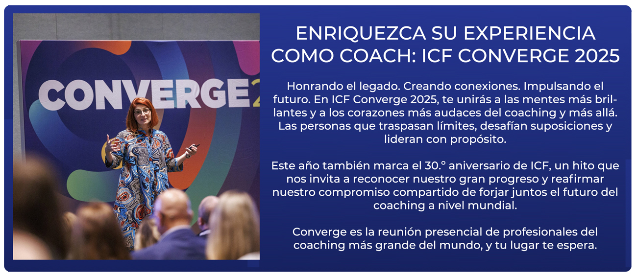 Este año celebramos un hito importante: 30 años de ICF como líder mundial en coaching profesional. Para conmemorar esta ocasión especial, traemos Converge 25 a California, el lugar donde comenzó nuestra trayectoria. Fundada en 1995 con una visión que trascendió fronteras, ICF se propuso unir a coaches de todos los continentes, elevar los estándares profesionales y demostrar el poder transformador del coaching en todo el mundo. Hoy, esa visión sigue viva en una comunidad global que abarca más de 180 países, y su impacto sigue creciendo. En Converge 25, celebraremos nuestra trayectoria colectiva con una programación especial de aniversario y momentos significativos a lo largo de la experiencia. Juntos, honraremos nuestro progreso y nos adentraremos con valentía en el futuro del coaching.